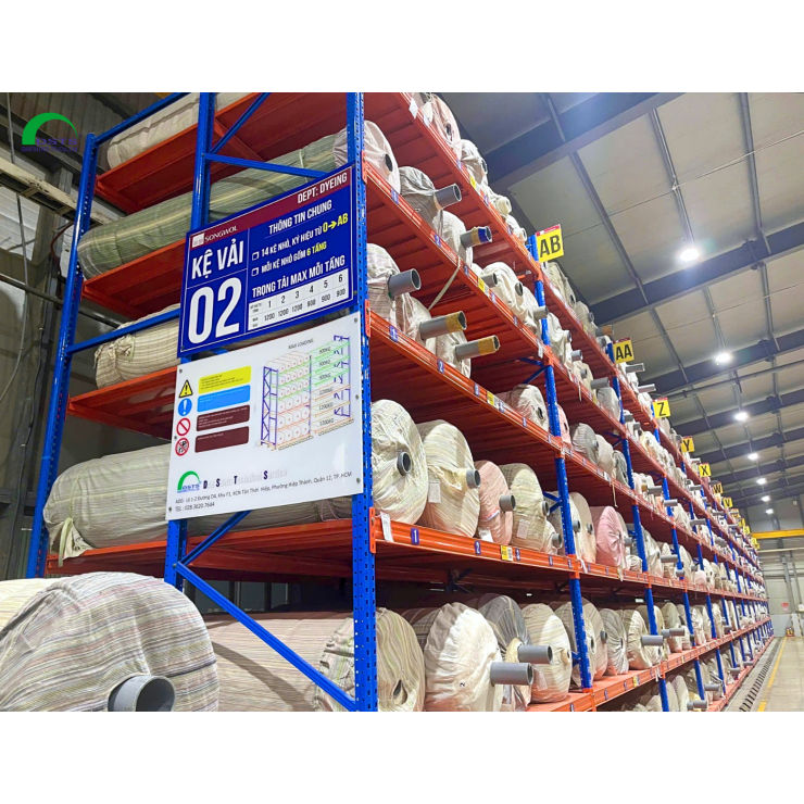 Giá kệ chứa vải là hệ thống kệ được thiết kế chuyên biệt để lưu trữ các loại vải cuộn, dùng trong: