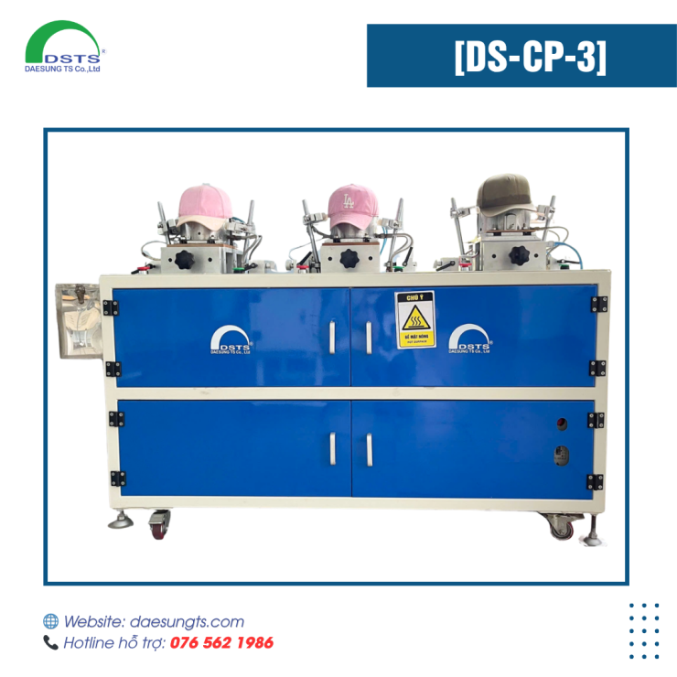 Máy Định Hình Nón Nóng – Lạnh [DS-CP-3] là giải pháp hiệu quả giúp doanh nghiệp tăng năng suất – đảm bảo form chuẩn – nâng cao chất lượng sản phẩm, đồng thời tối ưu quy trình sản xuất trong ngành thời trang.